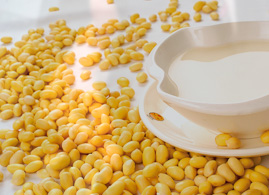 以富硒黃豆為原料,經(jīng)過配料、去雜、選粒、拋光、磁力選別、壓榨、豆餅破碎、磨粉、旋···